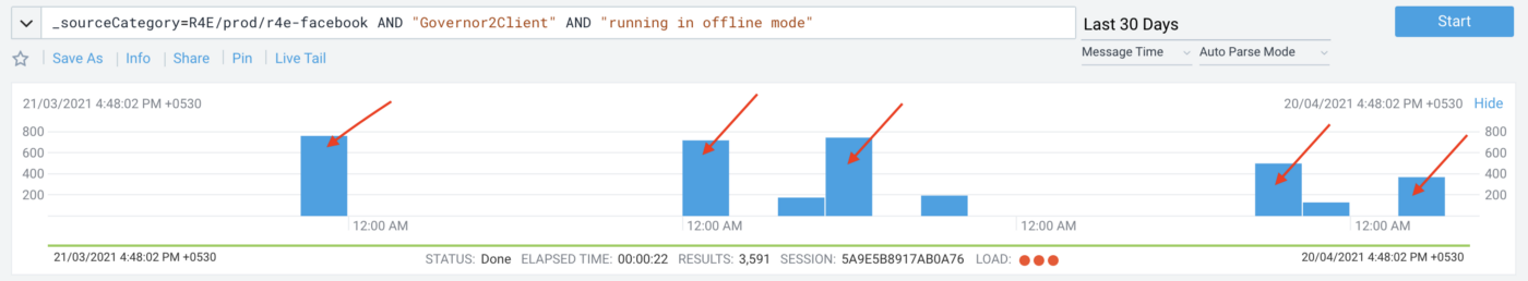 As we can see from our logs in the last 30days, there are times where there are short service disruptions and the clients continued to run their requests by getting the permits from the Governor client using offline mode.